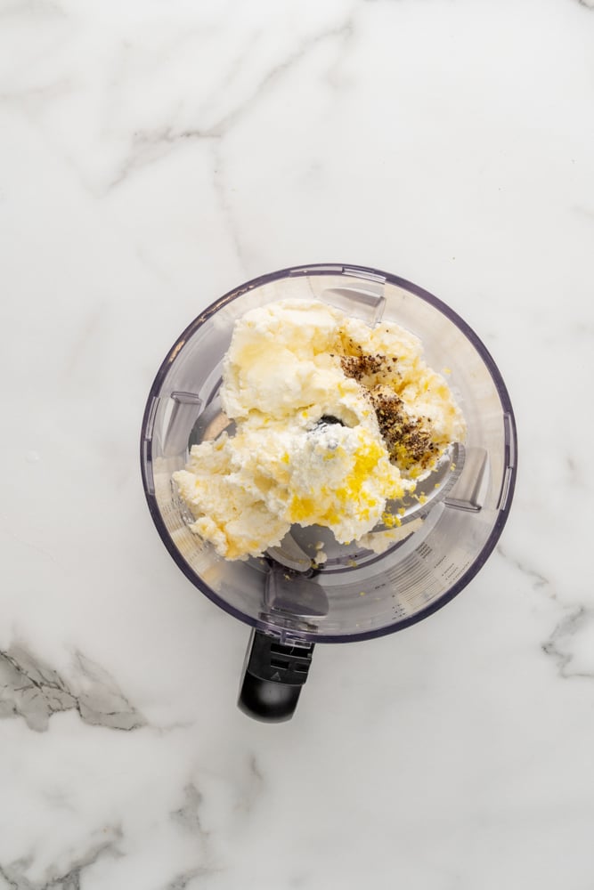 To make it, simply add your ricotta cheese, olive oil, honey, lemon zest, salt, and pepper to your blender or food processor. Pulse a few times to incorporate everything, then blend on high for 30 seconds to 1 minute until the mixture is smooth and creamy. The ricotta should transform from grainy to silky. If you prefer a thicker consistency, blend for less time. For an ultra-smooth whipped ricotta dip, blend for the full minute. It’s really that simple!